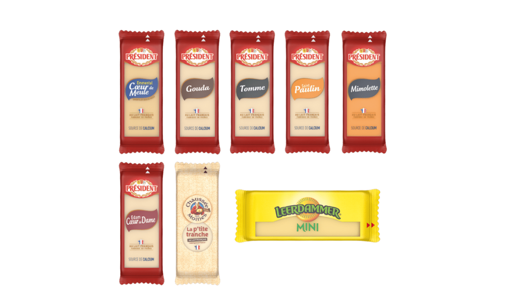 - Réduction du plastique sur les portions de fromage préemballées pour la CHR, avec un gain estimé de 14 tonnes de plastique en moins par an.