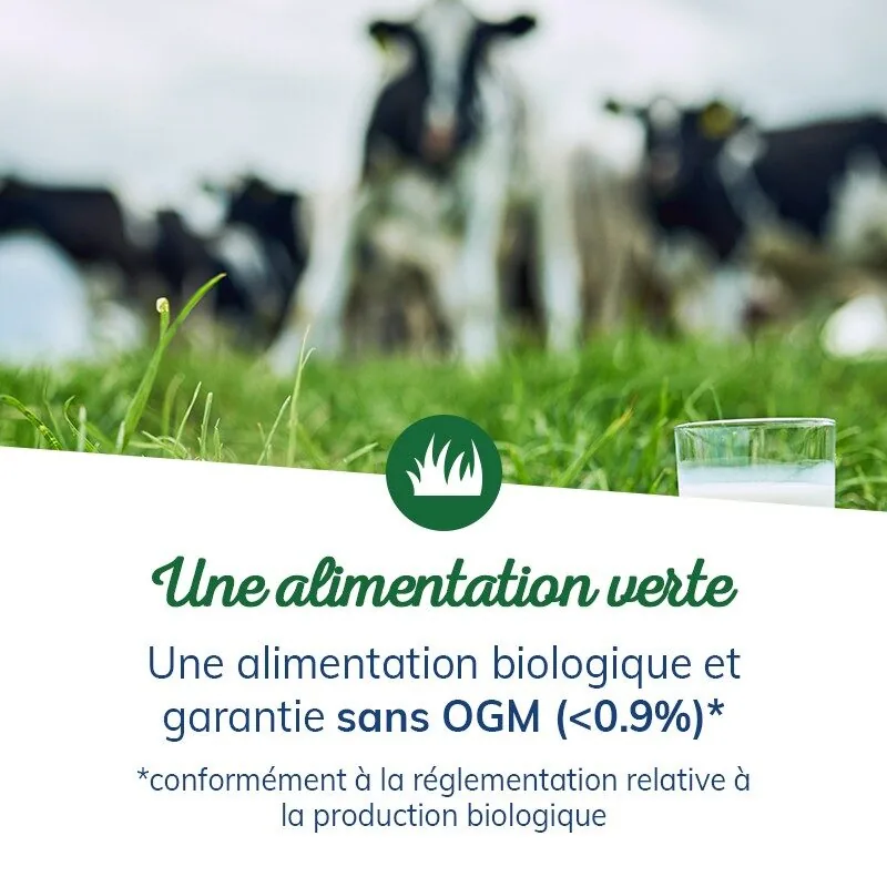 Une alimentation biologiques des vaches scrupuleusement contrôlée et garantie sans OGM.