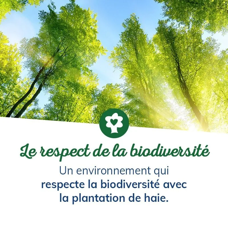 Pour l’avenir de la filière, l’environnement et la biodiversité sont au cœur des préoccupations dans les élevages qui assurent une production de lait Bio. Dans le cadre de la démarche et avec l’aide des producteurs, nous nous engageons à planter au moins 20 000 arbres en bordure des prés chaque année.