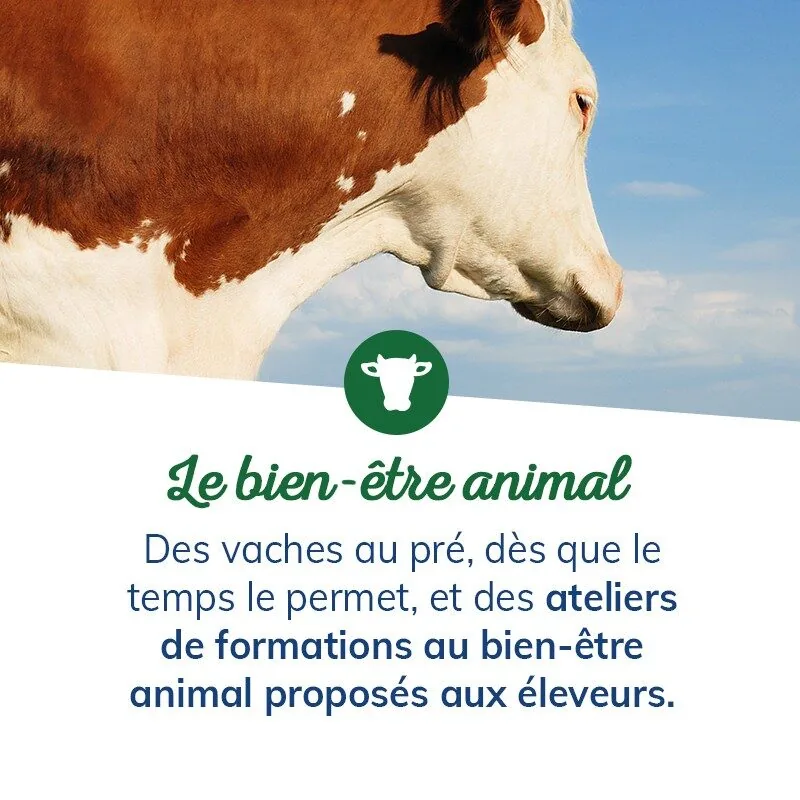 Facteur essentiel de la filière Bio en France : le pâturage des troupeaux en plein air et le bien-être animal sont essentiels. Lactel professionnel va plus loin en proposant des formations aux éleveurs au bien-être animal et aux médecines douces.