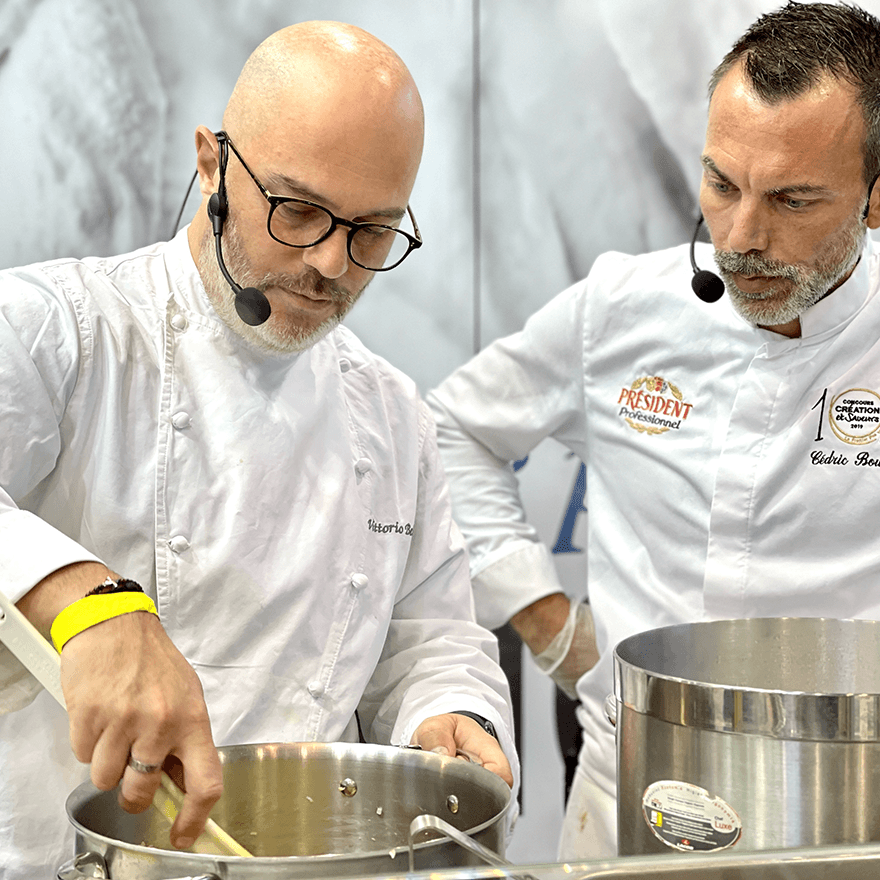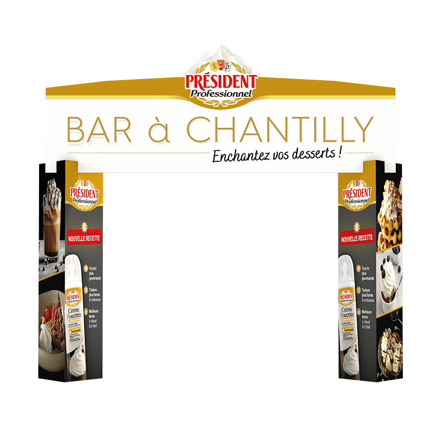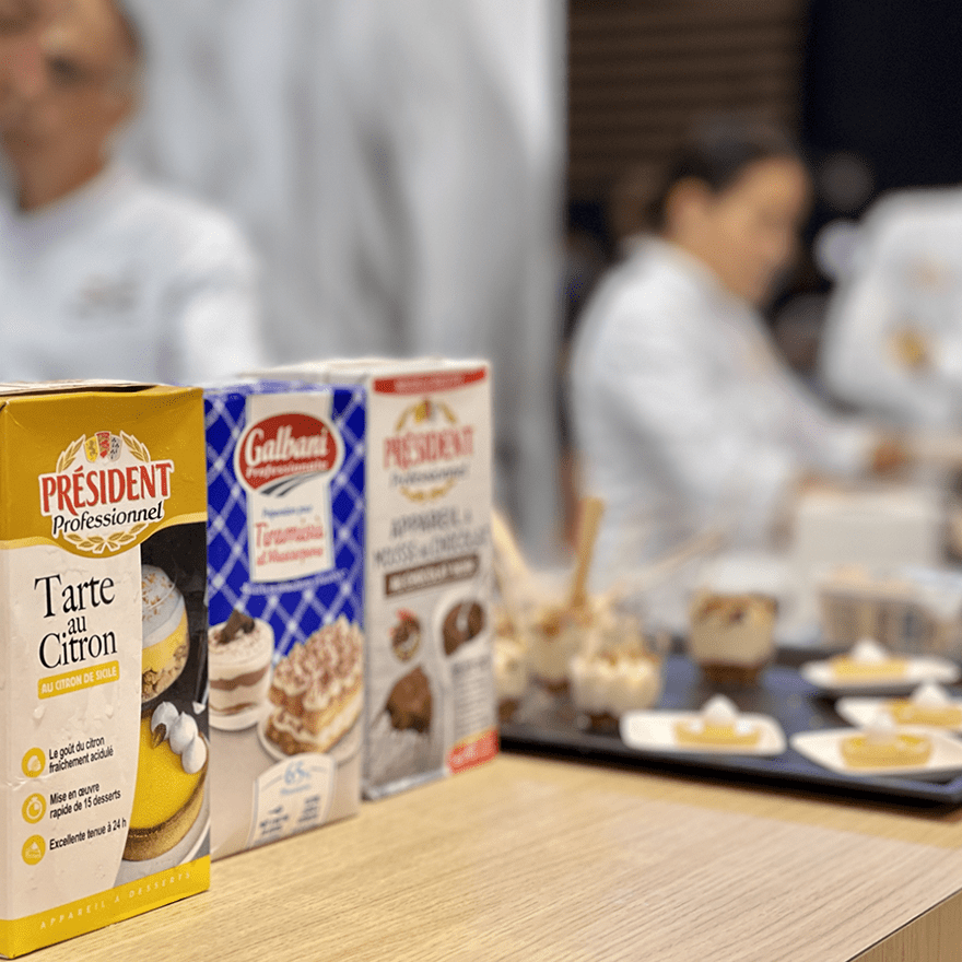 Tous les jours entre 16h30 et 17h30, notre équipe culinaire proposera une animation dégustation de desserts réalisés sur place, accompagnés de la crème fouettée Président Professionnel à la vanille Bourbon.