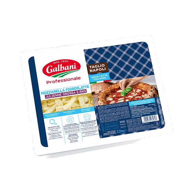 Aujourd’hui, près de 20 % des pizzaïolos indépendants ont adopté le brin Taglio Napoli (« taille napolitaine » en italien), une découpe artisanale en gros brins, qui garantit un rendu optimal sous haute température de cuisson (> 400°C). Le fromage conserve sa couleur blanche après passage au four et garde une texture souple et moelleuse pour un fondant parfait à la dégustation.