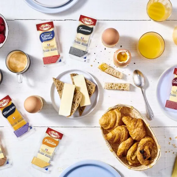 ¹ Seuil de 1,8 g pour 100 g pour les fromages fondus portions et 2,5 g pour 100 g pour les tranches de fromages fondus. 66% du volume de fromages fondus à marque LACTALIS respectent les seuils de taux de sel en 2023.