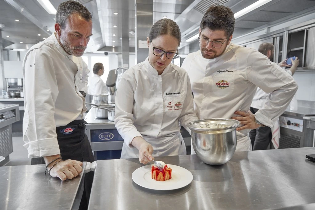 Le Concours Écoles Président Professionnel, construit en partenariat avec l’Éducation Nationale, est destiné aux élèves de l’Hôtellerie Restauration. Depuis 11 ans, il participe à la valorisation de ces métiers et à la transmission des savoirs en s’inscrivant pleinement dans un programme pédagogique. Les élèves de cuisine et de service de commercialisation ont l’opportunité de démontrer leur savoir-faire face à un jury de Chefs et d’enseignants, tout en se projetant dans leur futur métier. En 2023, les finalistes ont aussi été conviés à la Cité du Lait à Laval. Ils ont appris à baratter le beurre et fait la rencontre d’un producteur de lait bio. Des moments riches en enseignements.