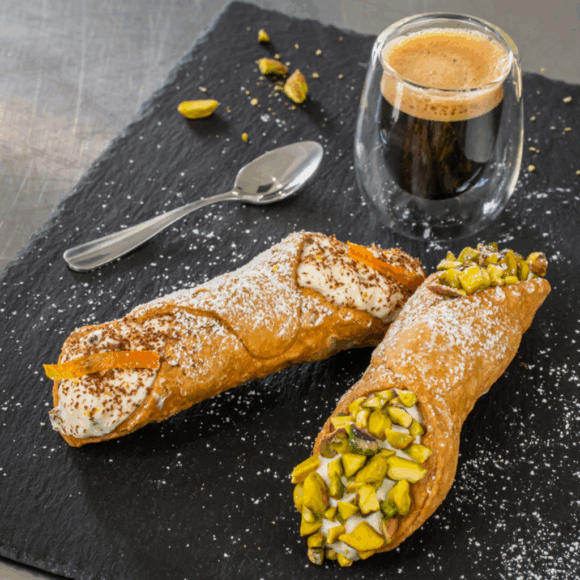 Mettre la ricotta dans une passoire fine au frais (min. 4h, idéalement une nuit). Une fois égoutter, fouetter la ricotta avec le sucre glace préalablement tamisé jusqu’à obtenir une crème lisse et homogène. Ajouter les zestes de citron et 1/4 des pistaches concassées. Mélanger délicatement avec une spatule. Mettre en poche à douille. Garnir les cannoli juste avant de servir. Tremper les extrémités dans des pistaches concassées. Saupoudrer de sucre glace et servir.