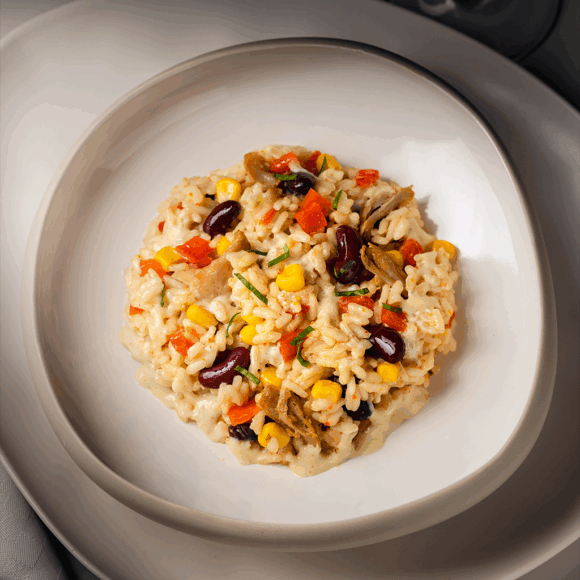 Au 2/3 de la cuisson, ajouter le maïs, les haricots rouges et les poivrons confits.